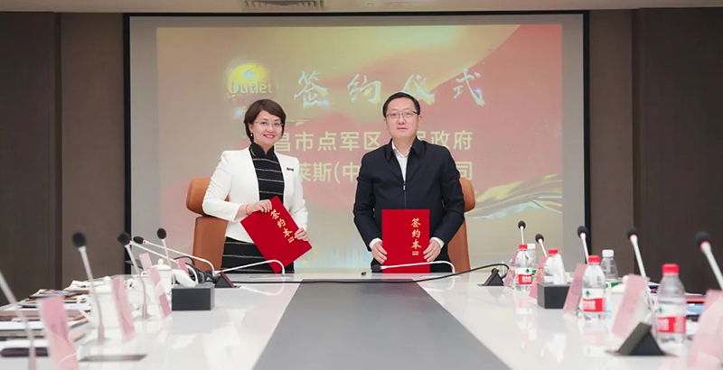 隨后,奧特萊斯(中國(guó))有限公司總裁與湖北省宜昌市點(diǎn)軍區(qū)區(qū)委副書記、代理區(qū)長(zhǎng)黃文云代表雙方簽署協(xié)議。