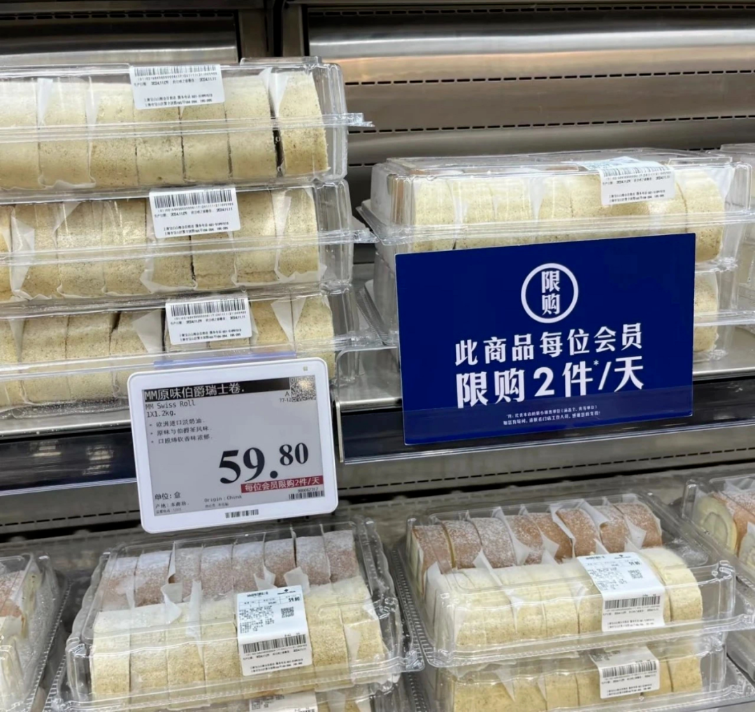 據(jù)了解,山姆的主要目標客戶是年收入20萬以上的中產(chǎn)家庭,消費降級≠生活品質(zhì)降級,因而,山姆通過多種方式打造產(chǎn)品的差異化和性價比,嚴苛選品與逆向研發(fā),采用「寬SPU、窄SKU」策略,如尋找一些獨家供應產(chǎn)品,追求差異化創(chuàng)新和更高品質(zhì),如牛奶為山姆專供;若需求產(chǎn)品沒有清晰行業(yè)標準或者外部供應鏈利潤率過高,山姆會選擇開發(fā)自有品牌。在此策略之下,山姆通過更優(yōu)的品質(zhì),大包裝高性價比打造出眾多爆款,比如瑞士卷、青檸汁、烤雞、麻薯等。
